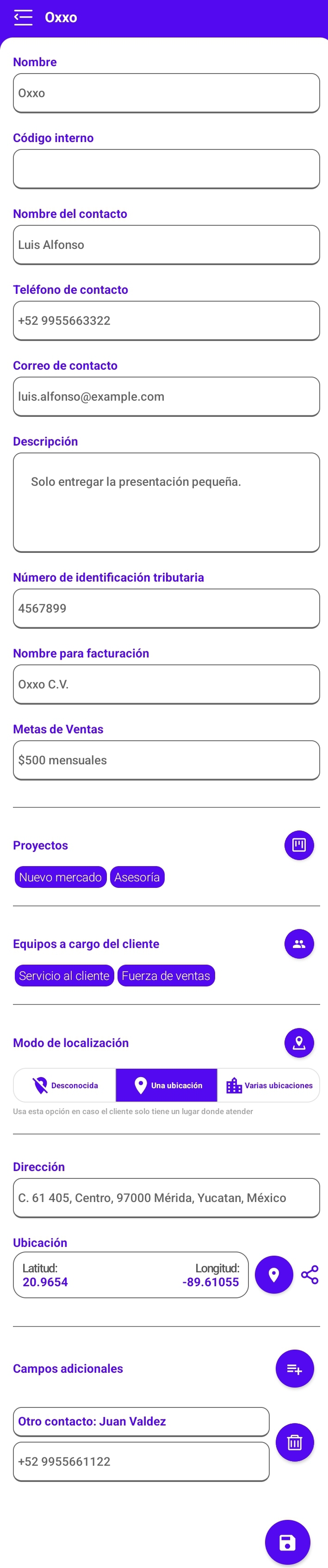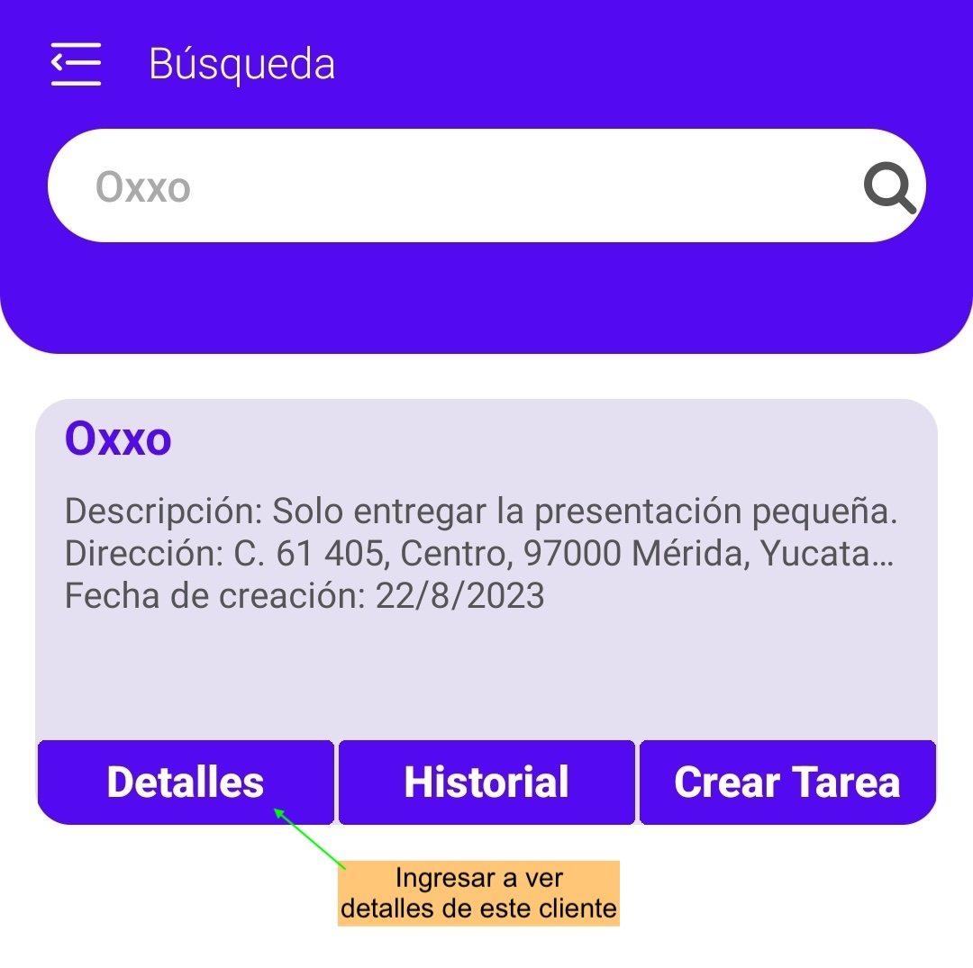Desde la pantalla de clientes, ingrese a un cliente y se mostrará la información del cliente.