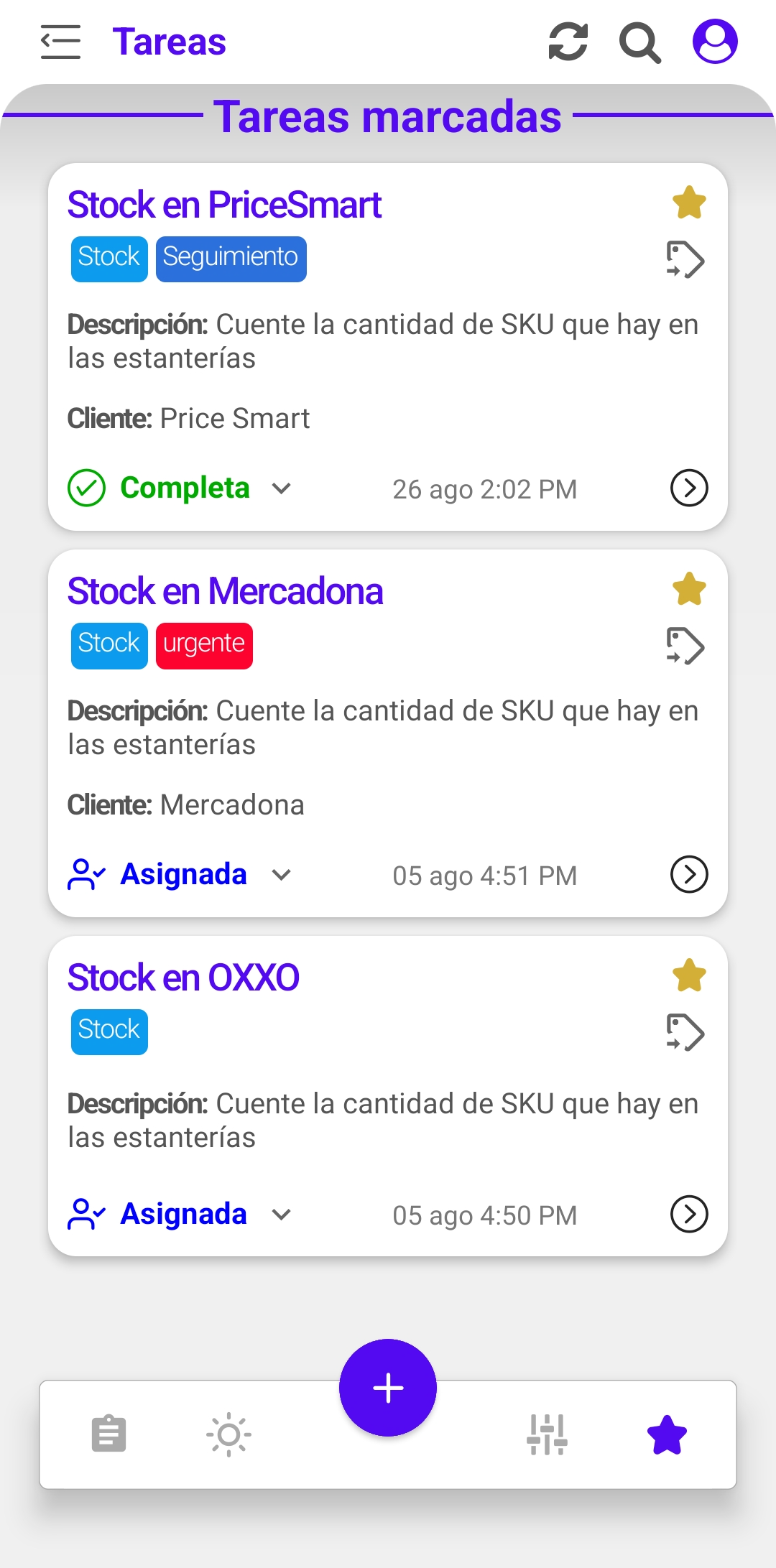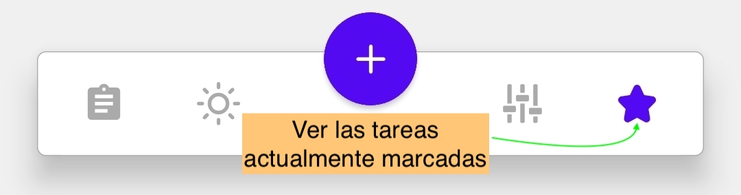 Para ver las tareas marcadas, presione el botón con icono de estrella en la parte inferior de la pantalla de tareas.