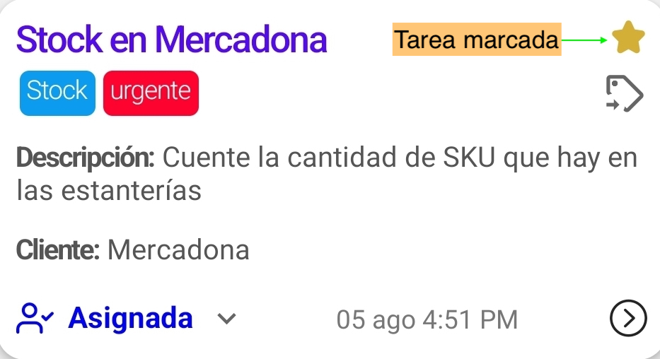 Cada tarea tiene un icono de estrella, si la tarea tiene la estrella vacía significa que la tarea no está marcada, si la tarea tiene la estrella llena significa que la tarea está marcada.