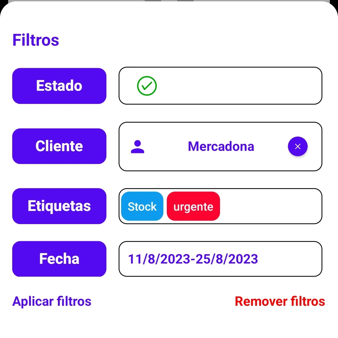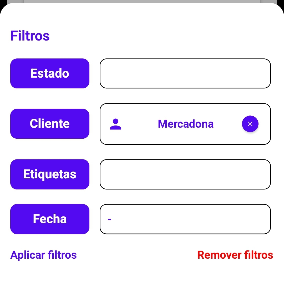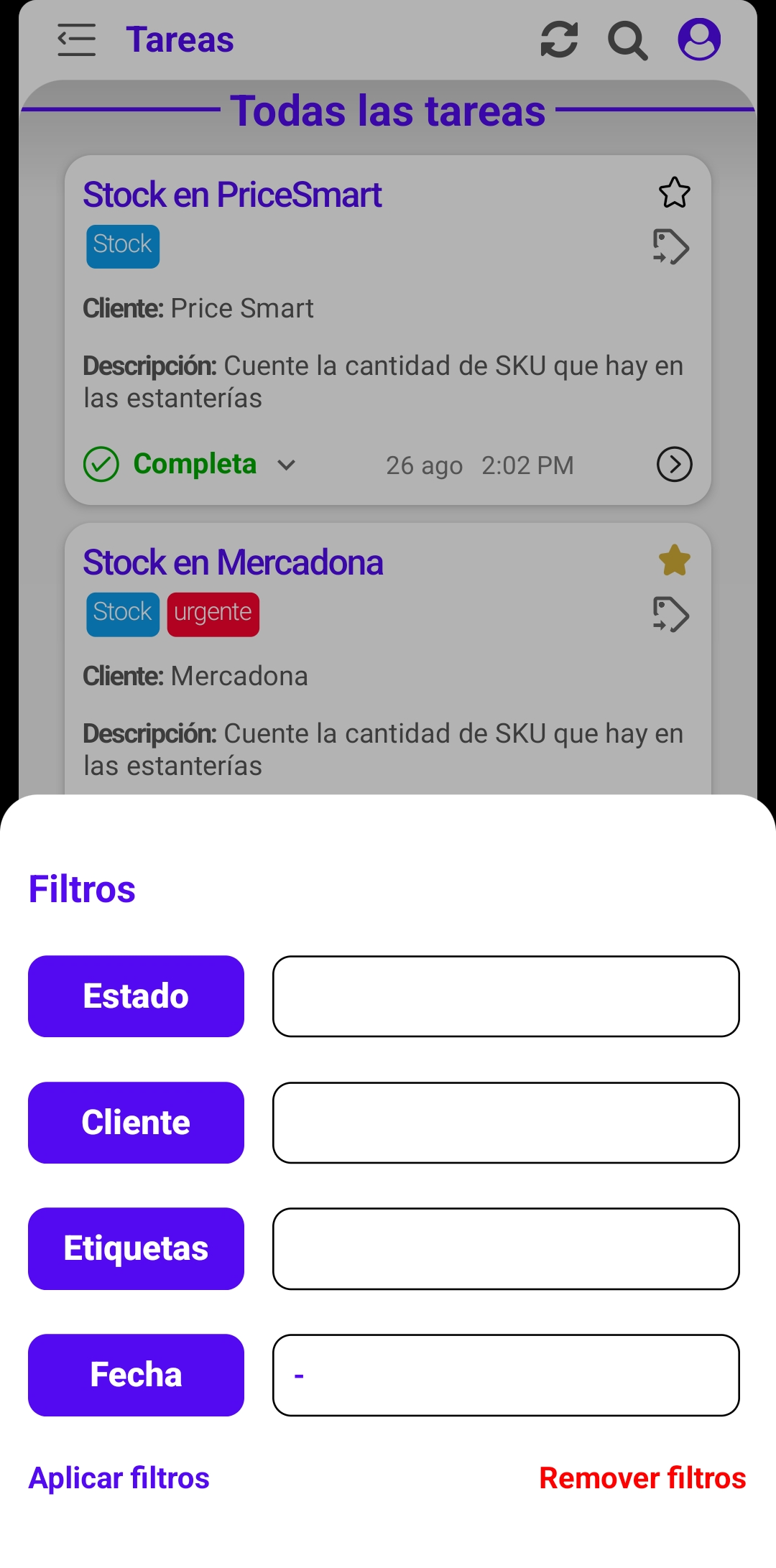 Para aplicar filtros en tareas, presione el botón Filtros en la parte inferior de la pantalla de tareas.