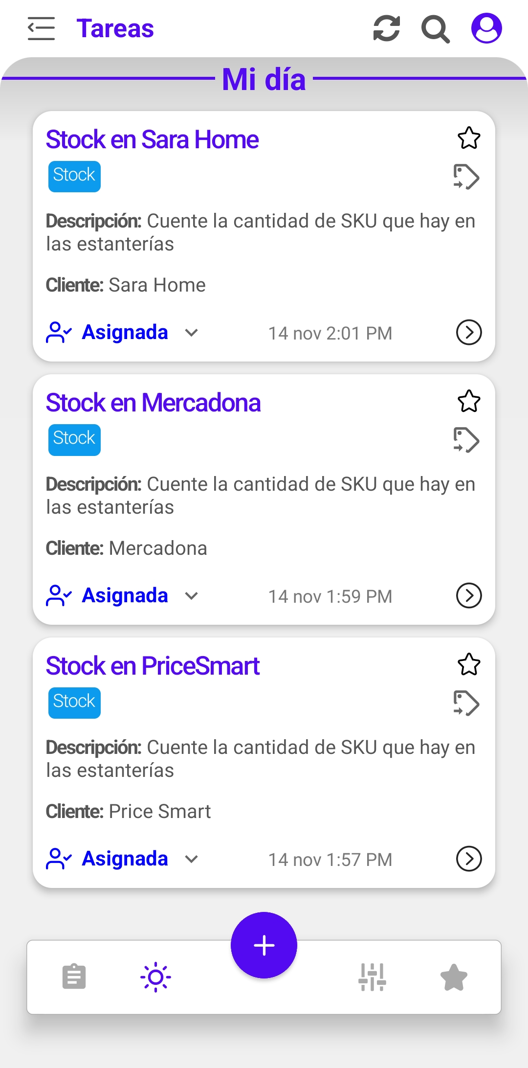 En la pantalla de Tareas hay una sección donde puede ver rápidamente las tareas creadas para el día de hoy.