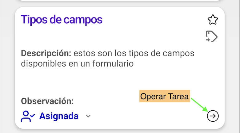 Desde la pantalla de Tareas, presione el botón ➜ para ingresar a la tarea.