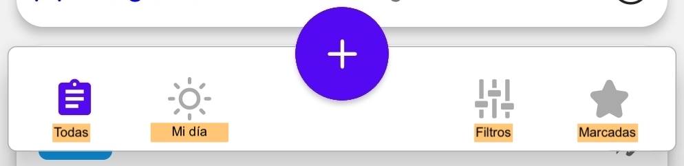 En la parte inferior aparecen una serie de botónes para ver todas las tareas (la opción por defecto), las creadas hoy, crear una nueva, aplicar filtros y por último mostrar las tareas marcadas.